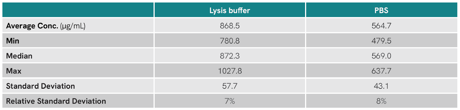 Table 1. Summary statistics of protein concentration measured by BCA assay for chicken tissue homogenized in RIPA lysis buffer or PBS using the Bead Ruptor Elite.